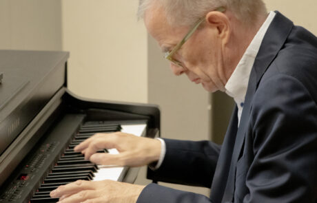 Nach den Grußworten von Gesundheits- und Pflegeminister Klaus Holetschek, OTH-Kanzler Ludwig von Stern, dem 2. Bürgermeister der Stadt Amberg, Martin J. Preuß und dem LfP-Leiter Achim Uhl eröffnete der renommierte Alternsforscher Prof. Dr. Dr. h.c. Andreas Kruse, Seniorprofessor distinctus der Universität Heidelberg, den Tag mit seinem Impulsvortrag „Neue Wege der Partizipation von Menschen mit Demenz und ihren Angehörigen – Vom Projekt zur gelebten Teilhabe“. Der Psychologe, Philosoph, Gerontologe und Musiker zeigte aus seiner breitgefächerten Perspektive zehn Punkte dafür auf, wie es gelingen kann, dass Menschen mit Demenz und ihre An- und Zugehörigen am gesellschaftlichen Leben teilhaben können. Kruse zog die Symposiumsteilnehmerinnen und –teilnehmer dabei nicht nur mit seinem „Crescendo“ und „Decrescendo“ im Vortrag, sondern auch mit seiner musikalischen Untermalung am Klavier in seinen Bann.