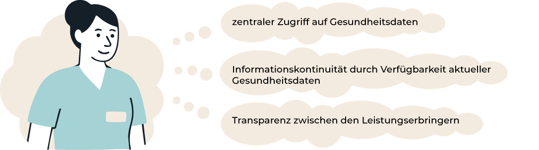 Bei einer Verschlechterung seines Allgemeinzustands kann das Pflegepersonal direkt in der ePA nachsehen, wann die letzte Blutuntersuchung war und welche Ärztin oder welcher Arzt welche Medikation zuletzt angepasst hat. Auch die behandelnde Hausärztin oder der behandelnde Hausarzt dokumentiert die Untersuchungsergebnisse in der ePA – für alle Beteiligten sofort einsehbar. Pflegefachpersonen haben grundsätzlich Leserechte für alle Daten in der ePA und Schreibrechte für pflegerische Daten.
